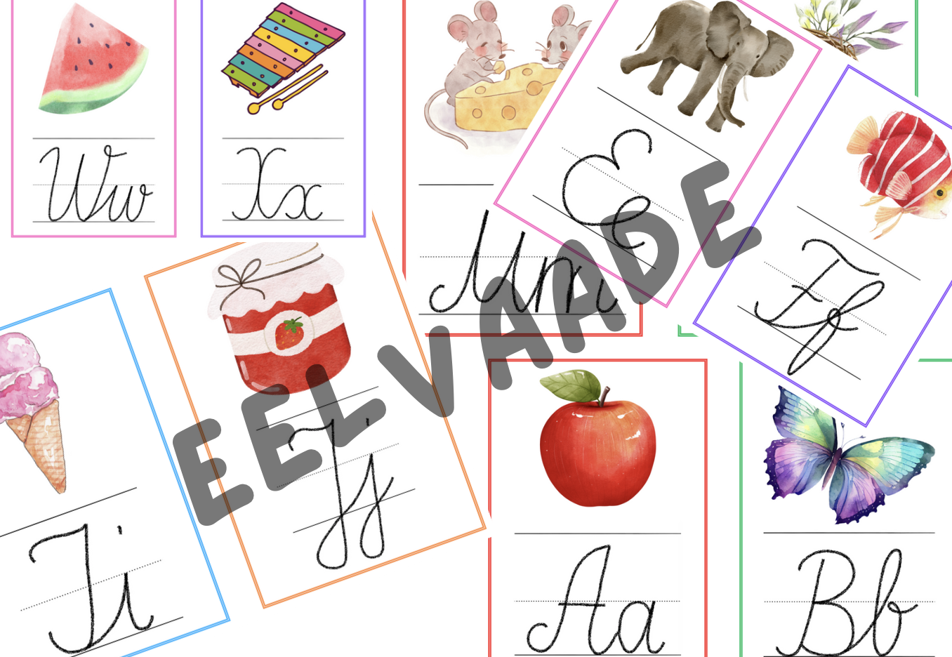 Käsikirjaliste tähtedega tähestik inglise keele klassi või tähekaartideks.
