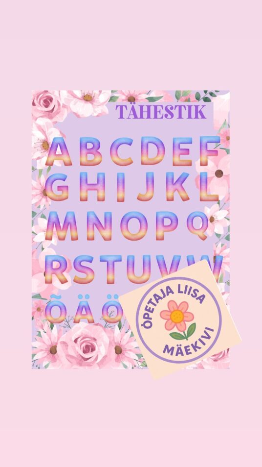 Tähestik seinale. Saab välja printida, vajadusel lamineerida ja kinnitada seinale.