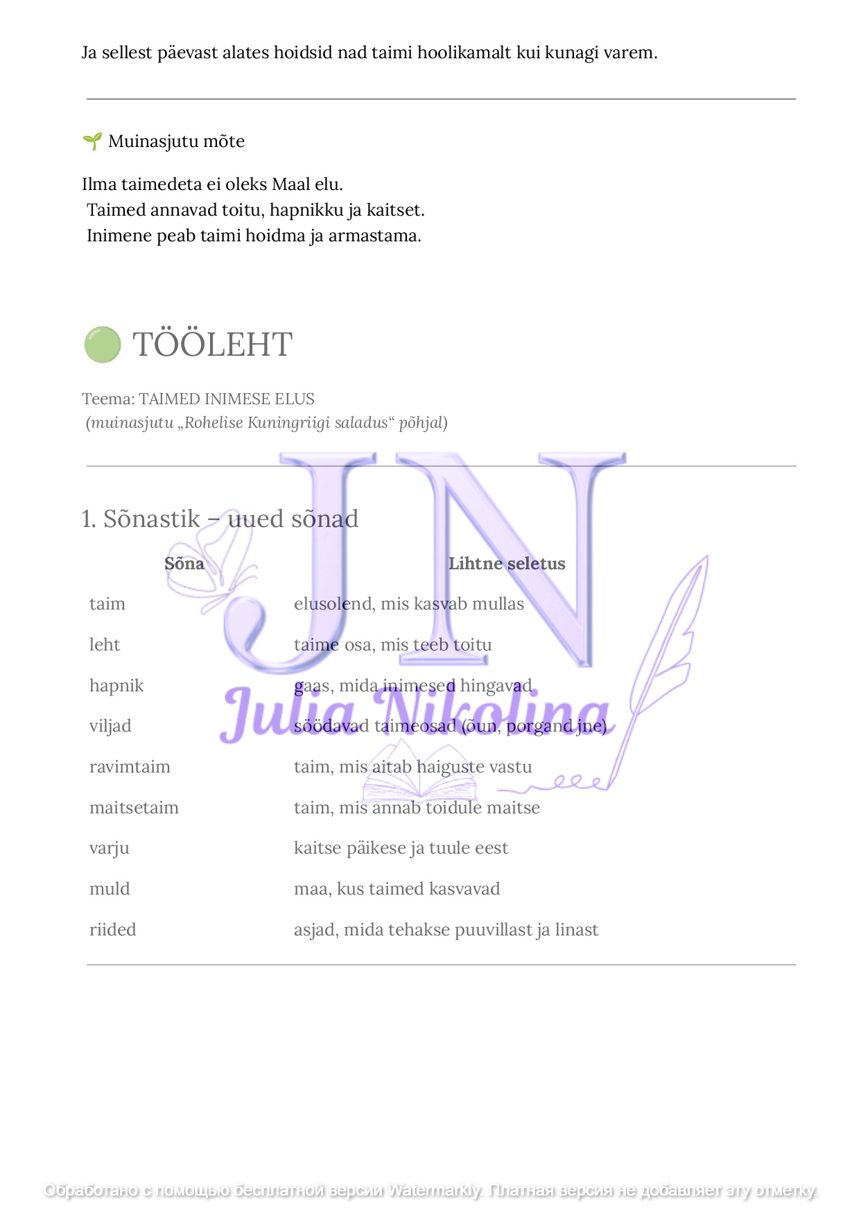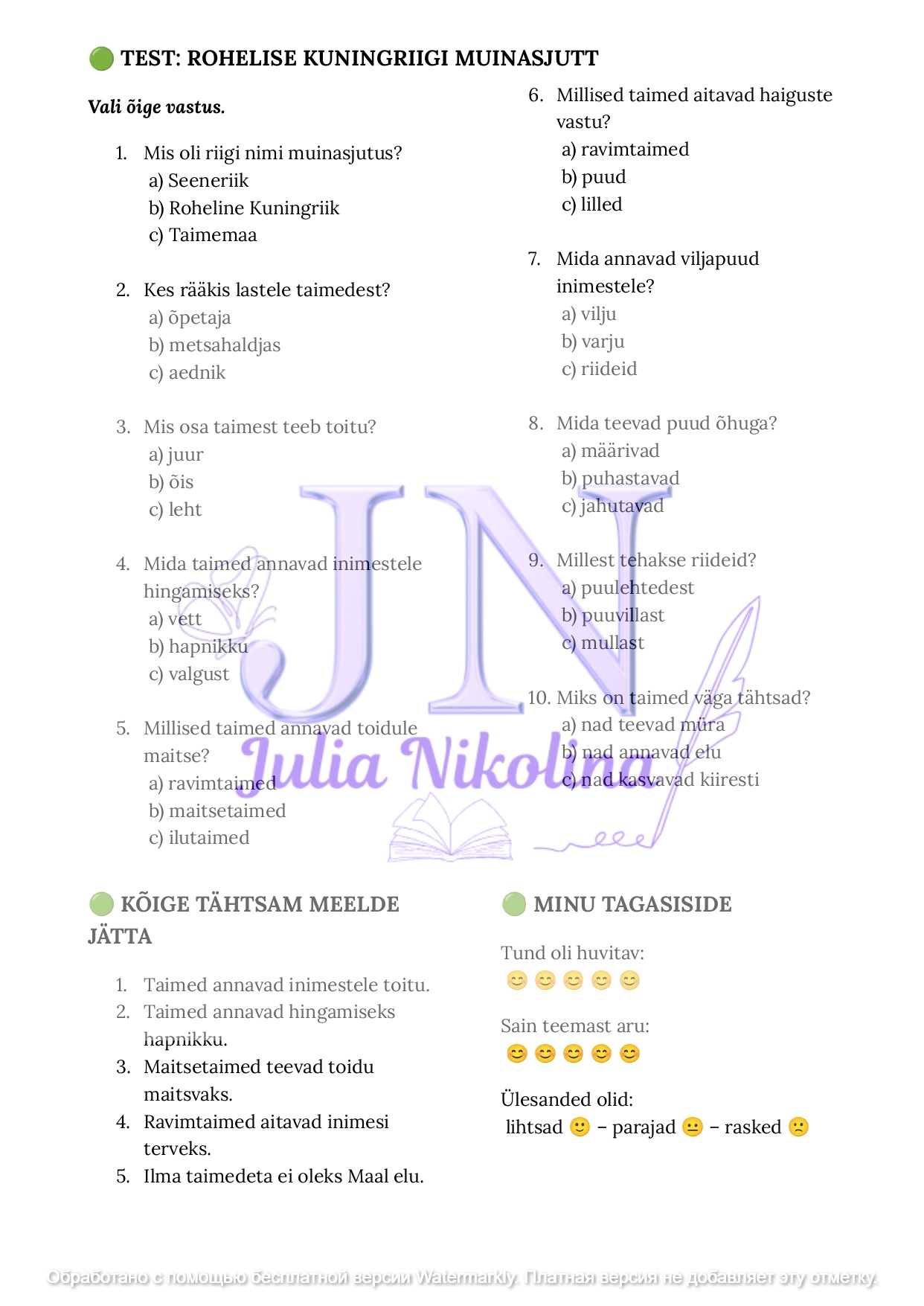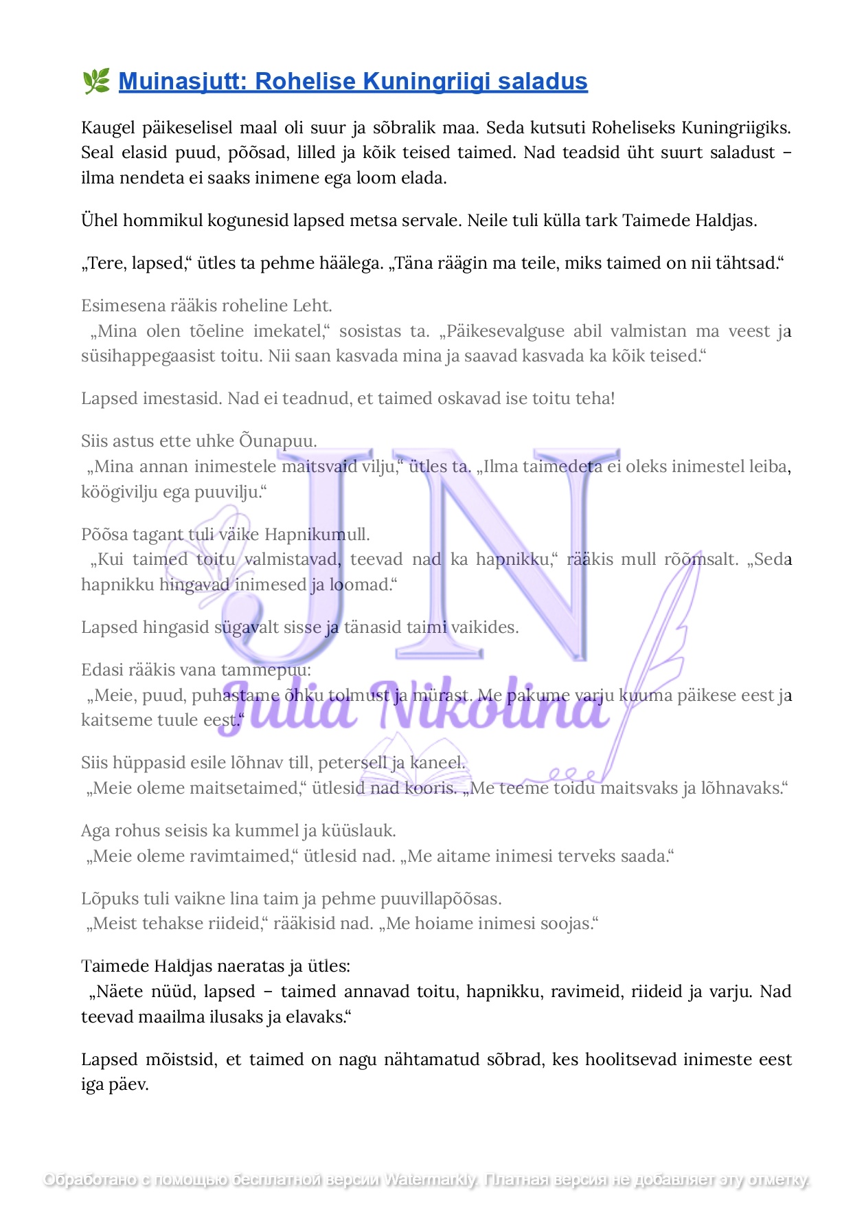 Õppematerjal: Muinasjutt ja töölehed „Rohelise Kuningriigi saladus“
