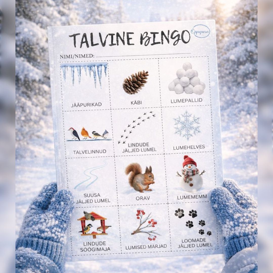 Talvine BINGO on lõbus ja arendav õuemäng, mis kutsub lapsi talvist loodust märkama, liikuma ja avastama. See sobib suurepäraselt nii lasteaeda, algklassidesse kui ka perega koos õues tegutsemiseks.