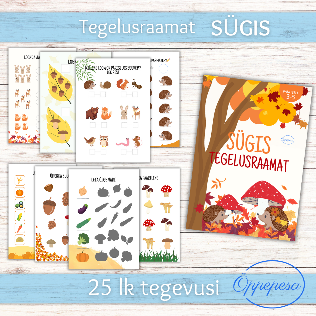See värviline SÜGISE teemaline tegelusraamat armsate piltidega pakub lapsele põnevat tegevust sombusteks päevadeks kodus. Tegelusraamat sisaldab vahvaid tegevusi ja aitab teie lapsel kujundeid, numbreid, paaride leidmist, parem-vasak suunda ja palju muud õppida ning lõbutseda!