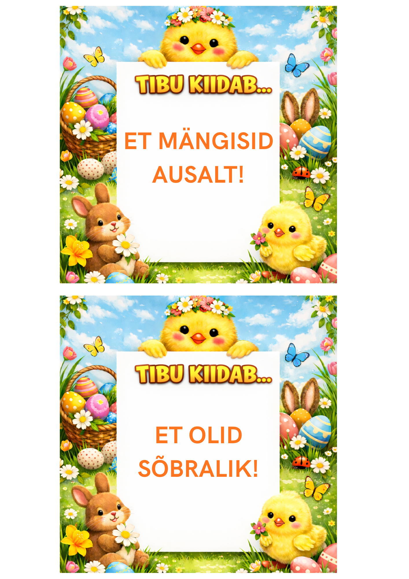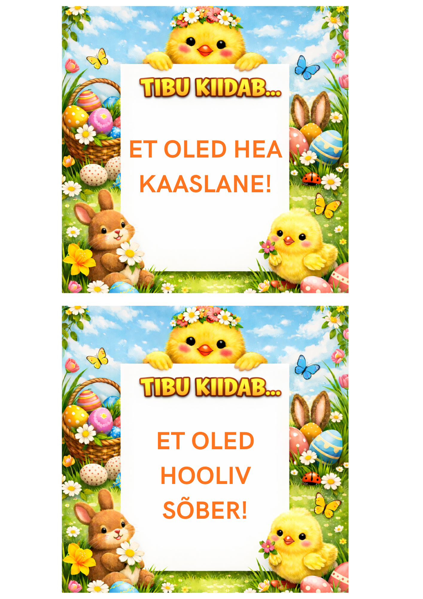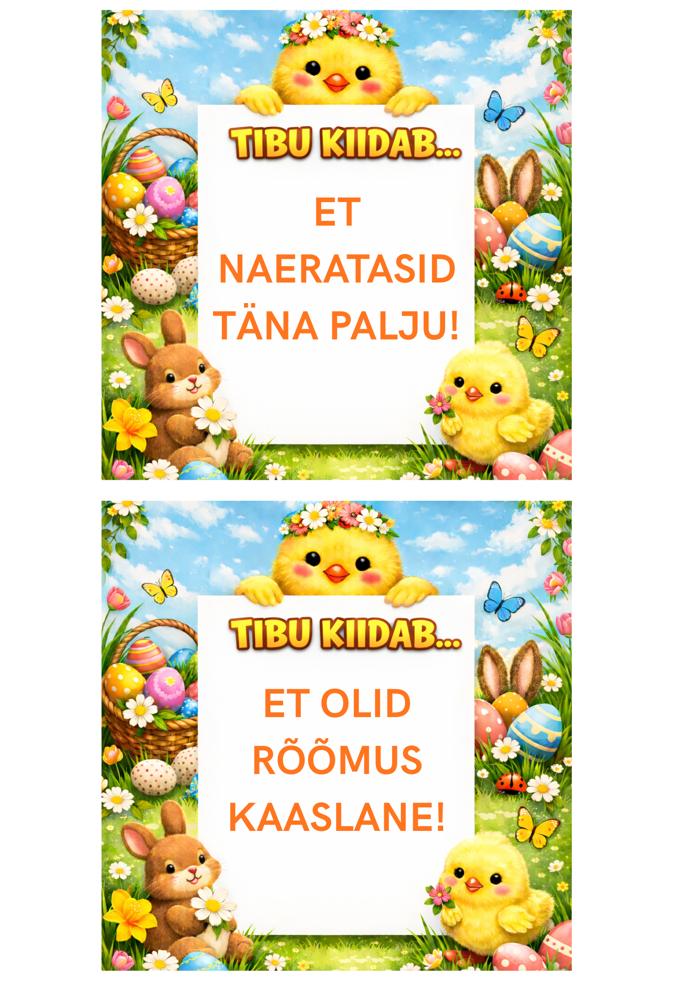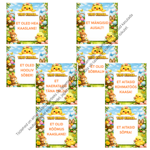 Siin on sulle 54 armsa kujundusega kiitusekaarti Munadepüha Tibult + lisaks 2 tühja kaarti, millele saad ise kirjutada.