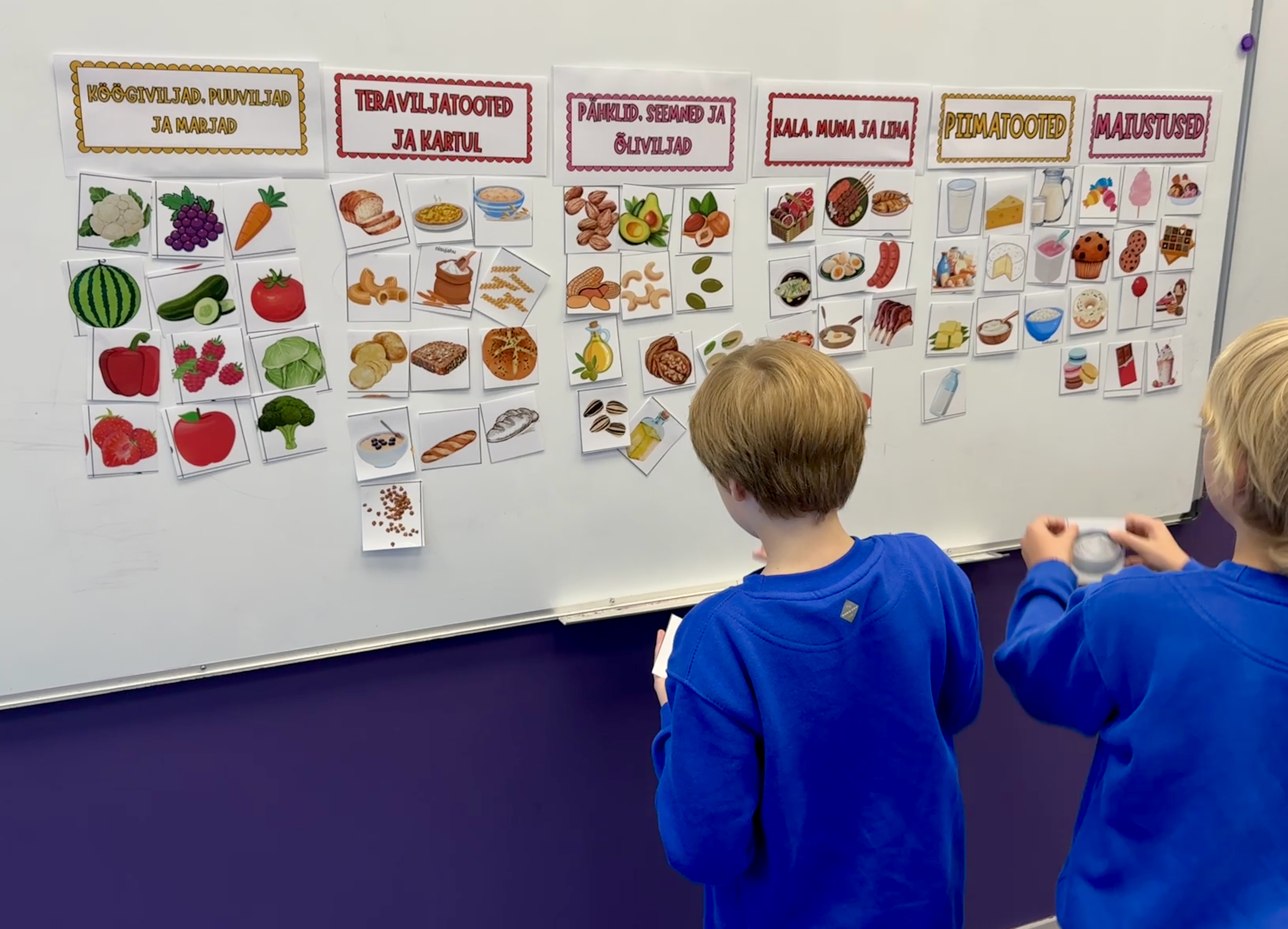 - Toidugruppide nimetustega kaardid, mille alla toiduained tuleb paigutada.