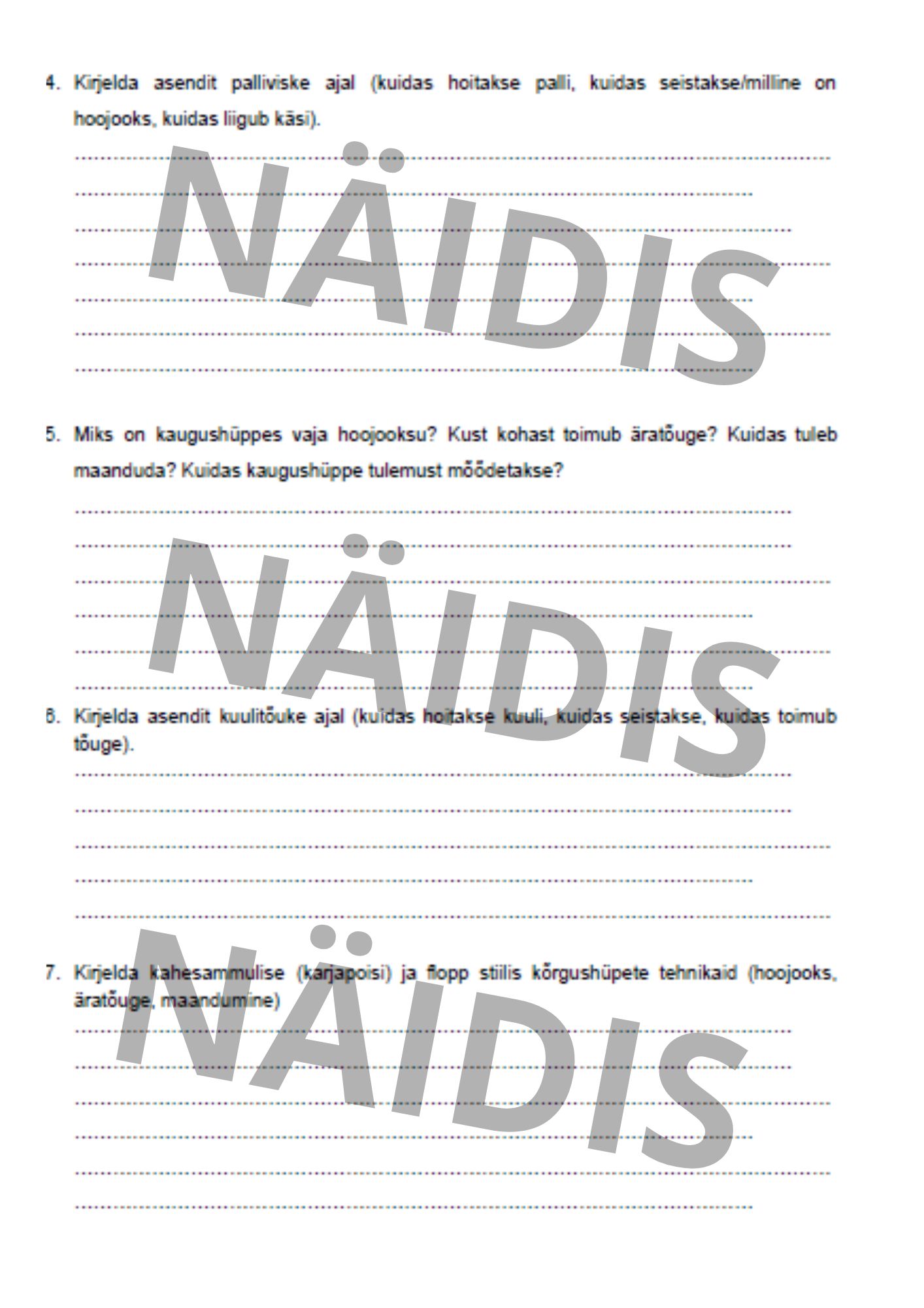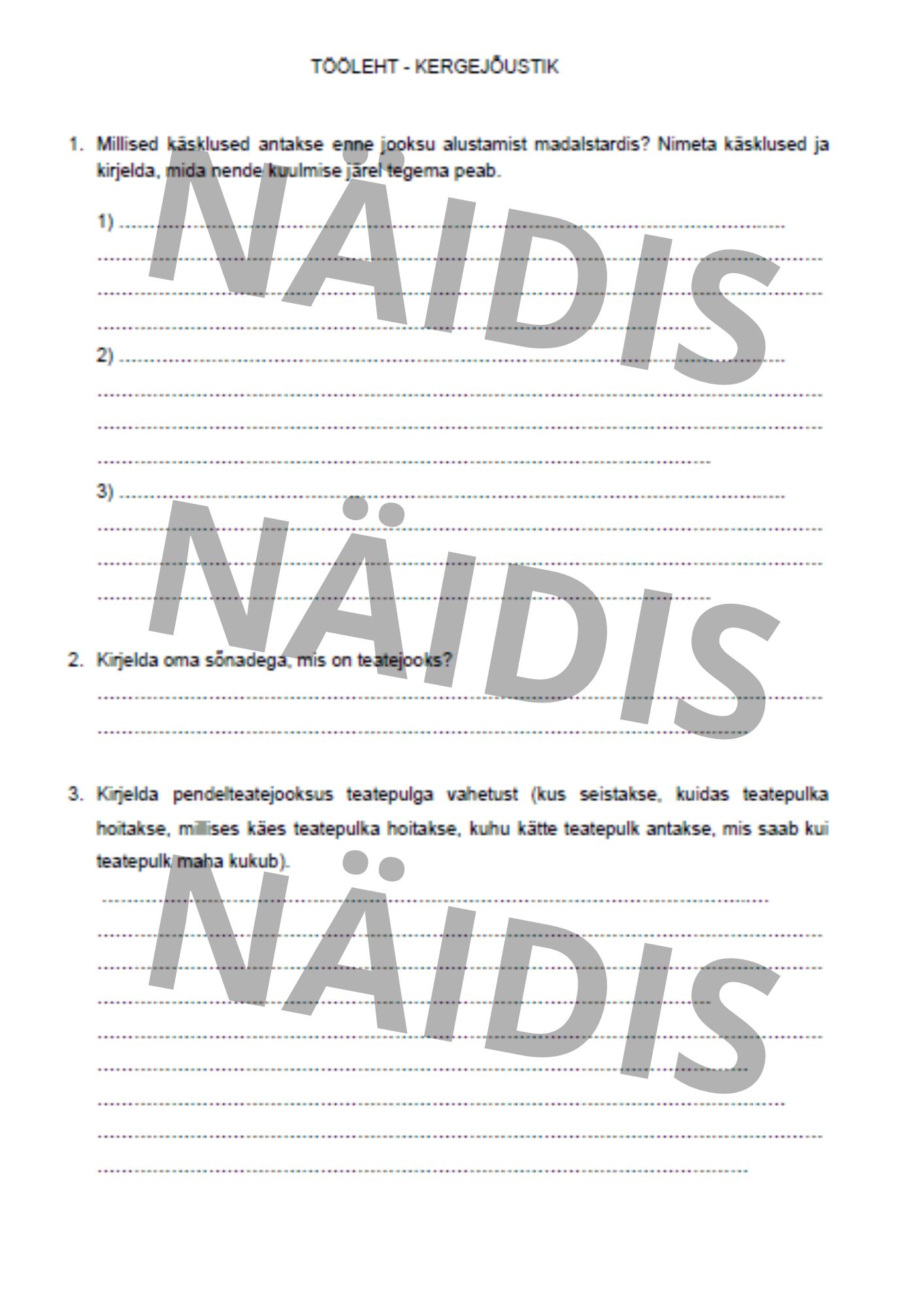 Kergejõustiku tööleht (2 lehte) tunni tegevusest vabastatud õpilasele, lisaülesandena vmt.