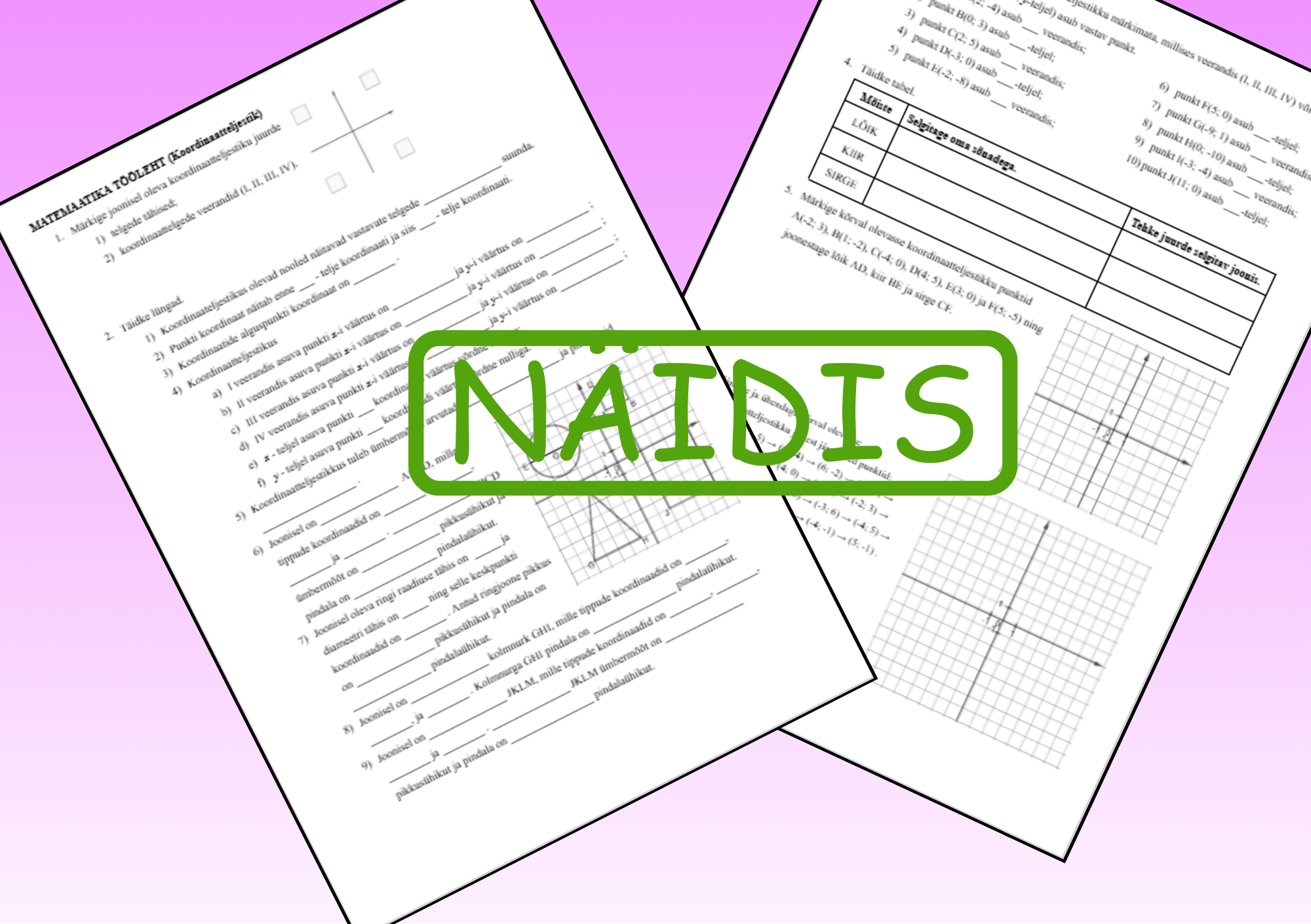 Tööleht koordinaatteljestiku kordamiseks. Tööleht on esitatud kahepoolse PDF  failina.