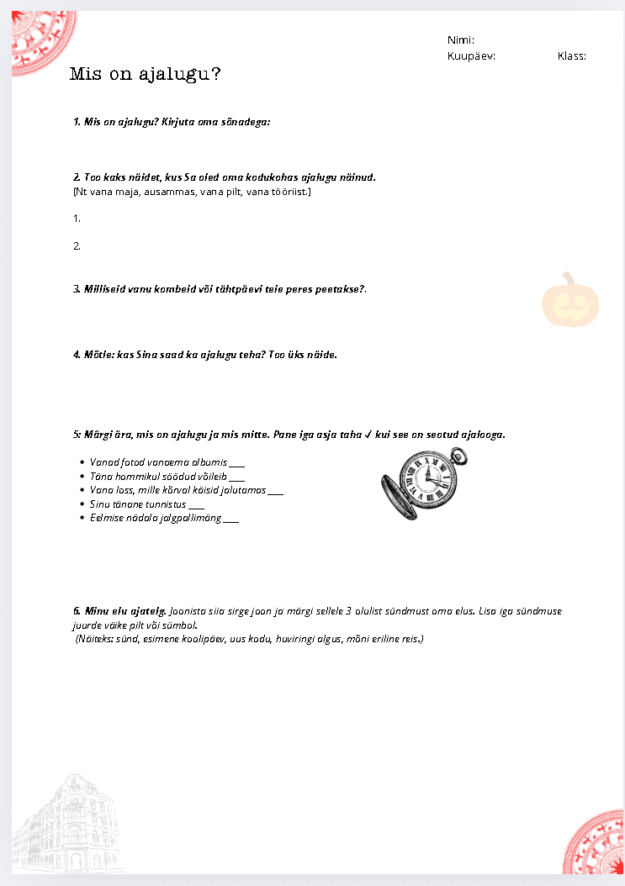 Tööleht „Mis on ajalugu?“ — 5. klassile