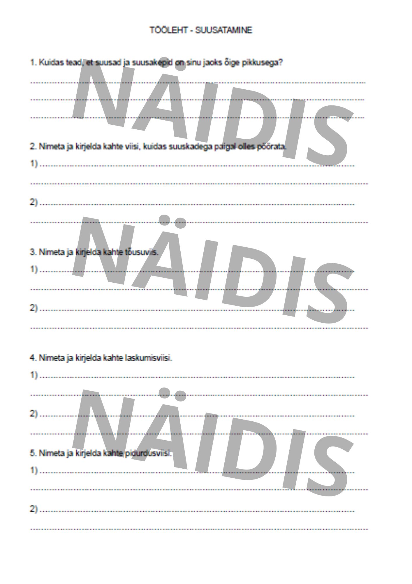 Suusatamise tööleht (2 lehte) tunni tegevusest vabastatud õpilasele, lisaülesandena vmt.