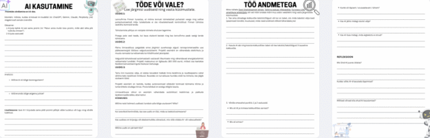 Praktiline tööleht, mille abil saavad õpilased võrrelda erinevaid tehisintellekte, analüüsida uudiste usaldusväärsust ning kasutada AI abi andmete tõlgendamisel.