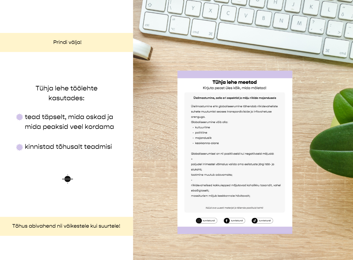 Õpid, aga ei saa täpselt aru, kas kõik oluline on meeles? Kui jah, siis tühja lehe meetodi tööleht on täpselt sulle!