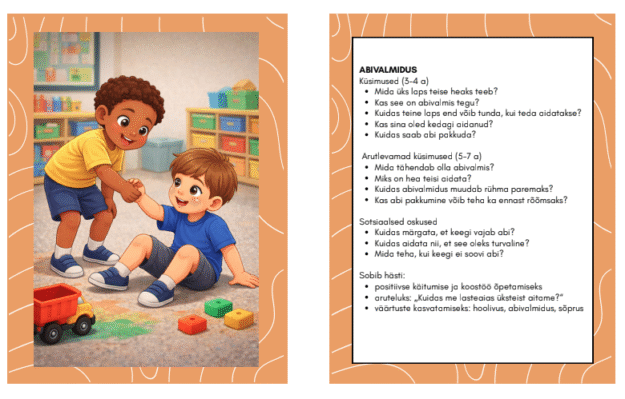 Materjal toetab lapse enesehinnangu, emotsionaalse teadlikkuse ja sotsiaalsete oskuste arengut ning aitab luua turvalist ja toetavat õpikeskkonda.