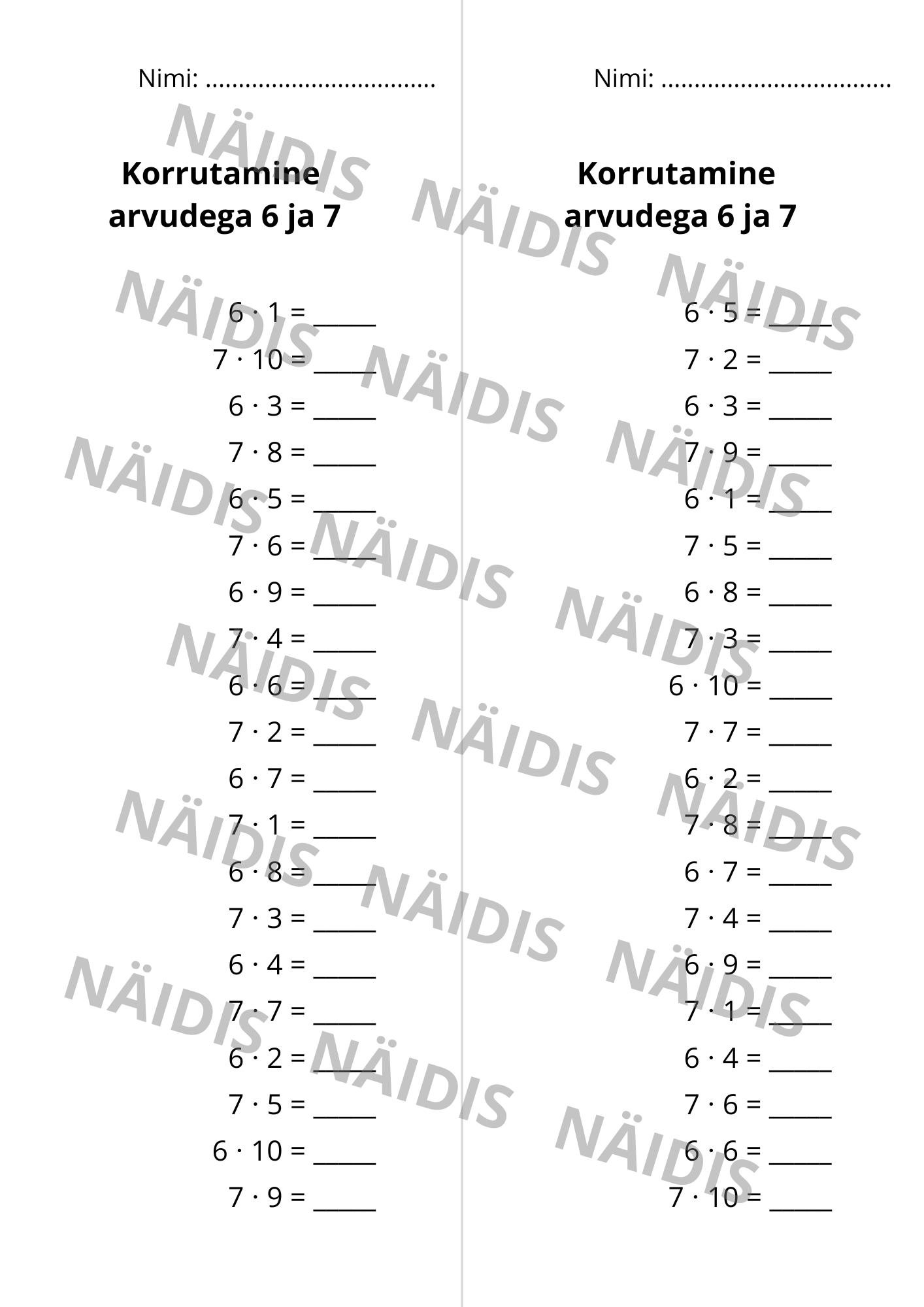 Tunnikontroll “KORRUTAMINE ARVUDEGA 6 JA 7”
