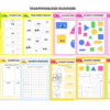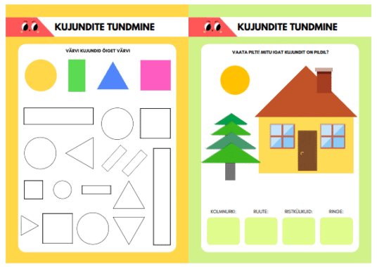 Lõbus, värviline ja kaasahaarav kujundus! Sisaldab erinevaid ülesandeid: kujundite nimetused, kujundite äratundmine, kujundite joonistamine, sorteerimine, lõikamine ja kleepimine, loendamine.