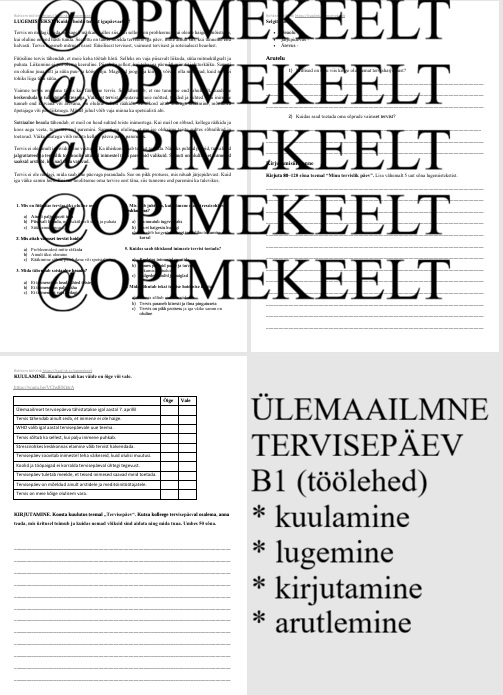 Töölehtede komplekt B1 keeletasemele. Sobilik ka keelekursustele. 3 lk. Lugemine, kuulamine, arutlemine ja kirjutamine.