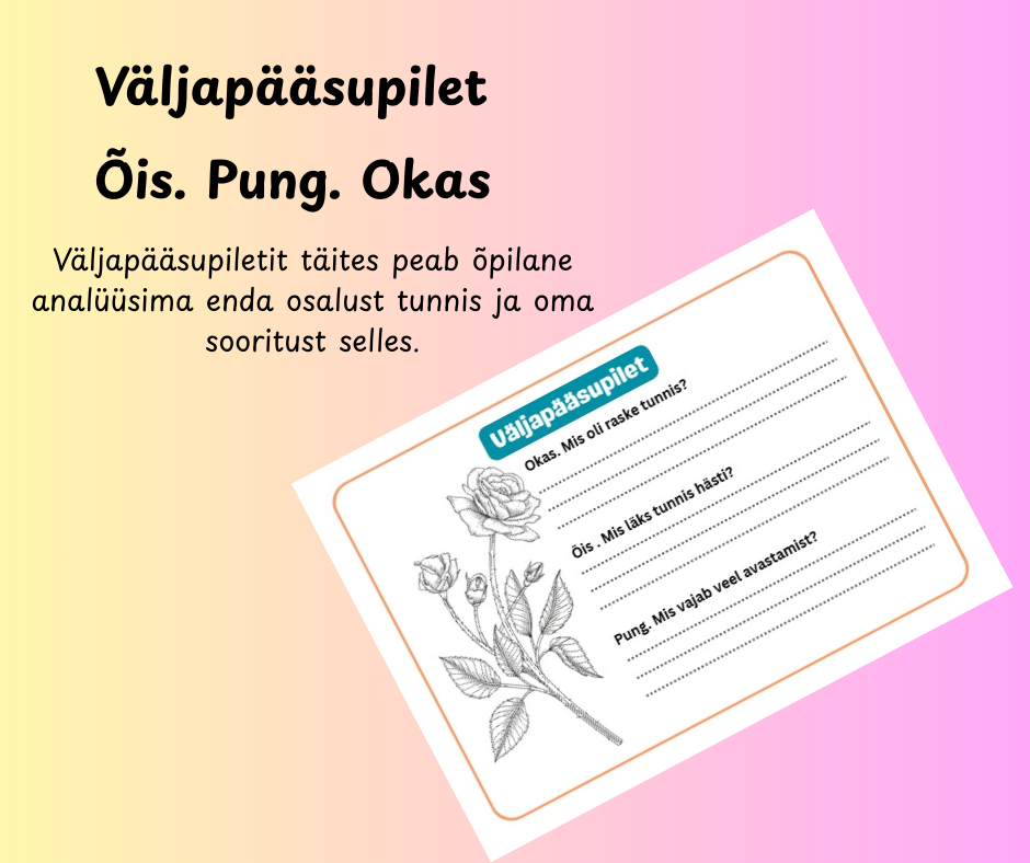 Väljapääsupiletit täites peab õpilane analüüsima enda osalust tunnis ja oma sooritust selles.