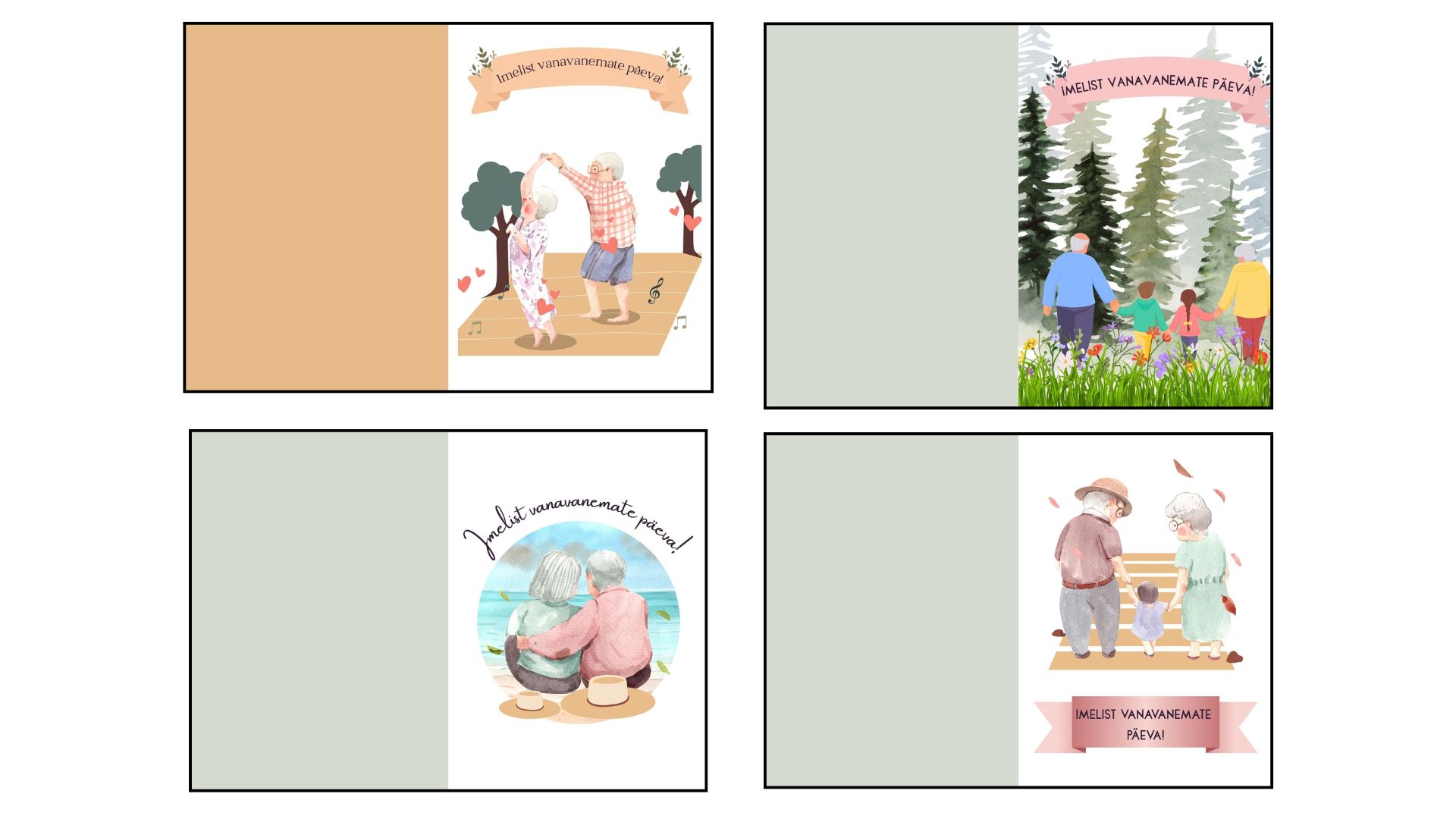 Vanavanemate päeva kaardid – neli erinevat varianti (sisse poole saab head soovid kirjutada).