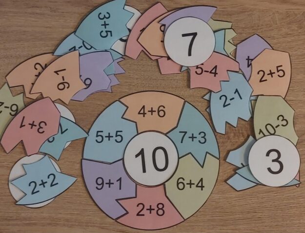 Värvilised arvuringid on mänguline õppematerjal, millega laps harjutab liitmist ja lahutamist 10 piires nagu puslet kokku pannes. Õpilane sobitab ringi tükid kokku nii, et iga tehe annab ringi keskel oleva arvu.