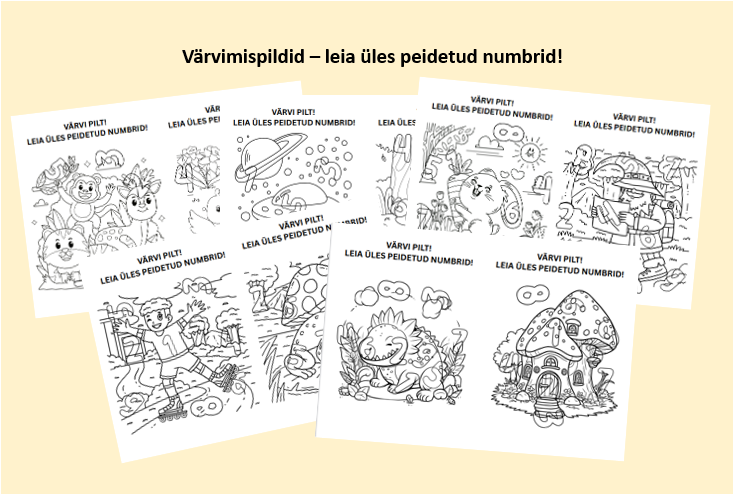 Värvimispildid – leia üles peidetud numbrid! (10 A4 lk)