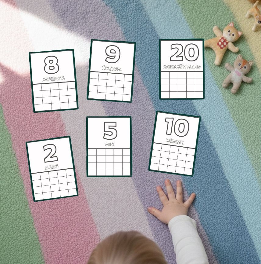 • Lase lapsel värvida iga number ning sellele vastav arv ruute – nii seostub number kogusega mänguliselt ja arusaadavalt.