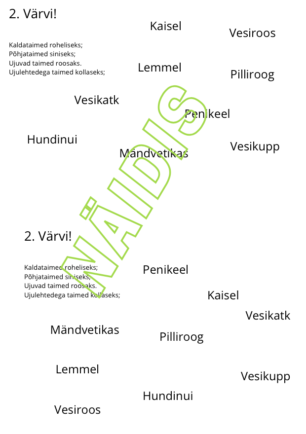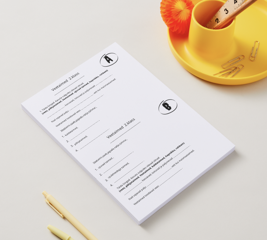 Loodusõpetuse 15 min tunnikontroll kahes variandis ühe A4 lehe kahelt poolt